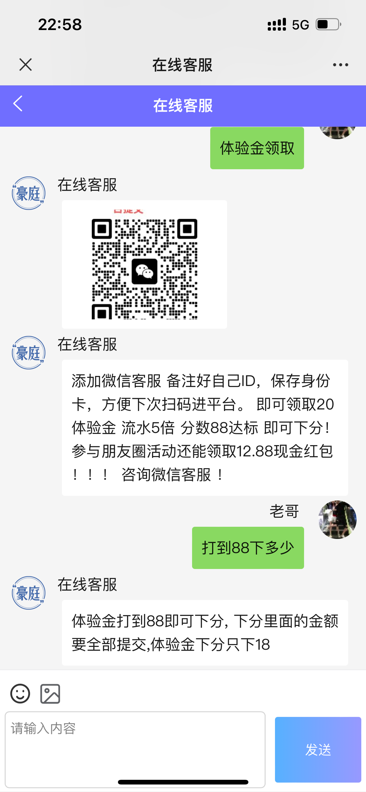 加客服微信 验证消息备注ID 领取20体验金 分数达标流水5倍达标 分数88达标 即可下18!!