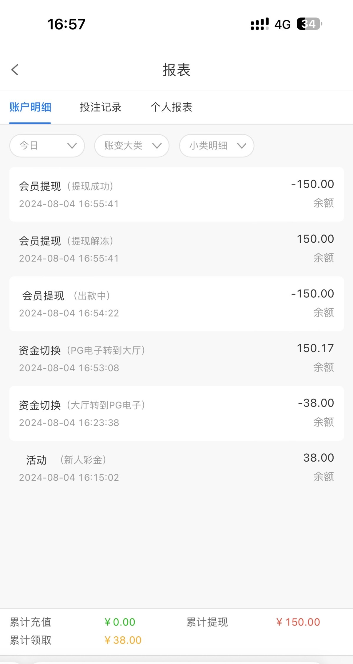 出款情况:自测