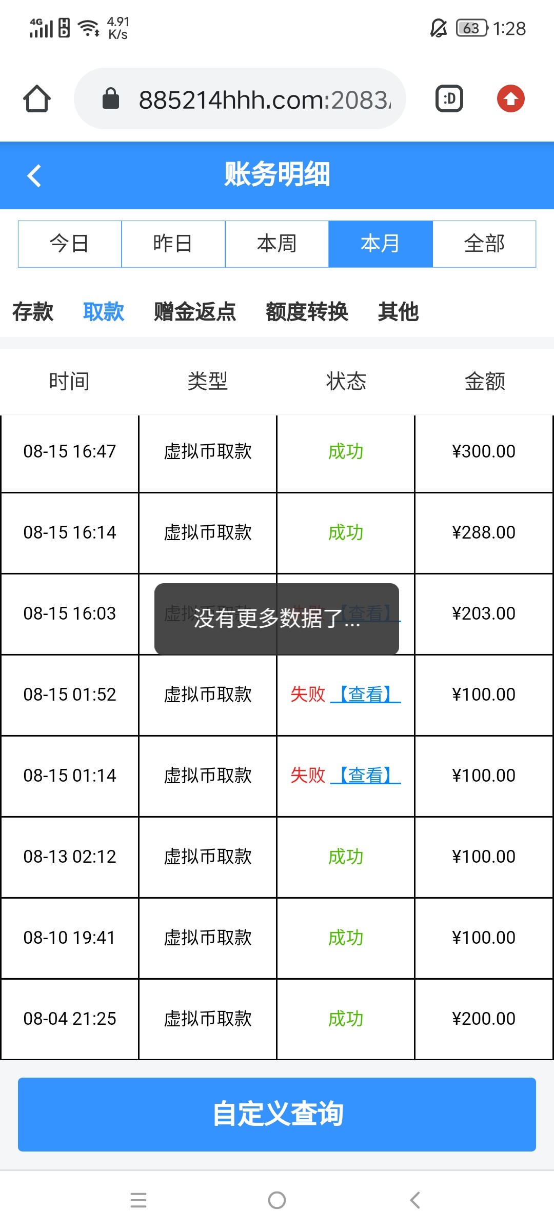 出款情况:自测
