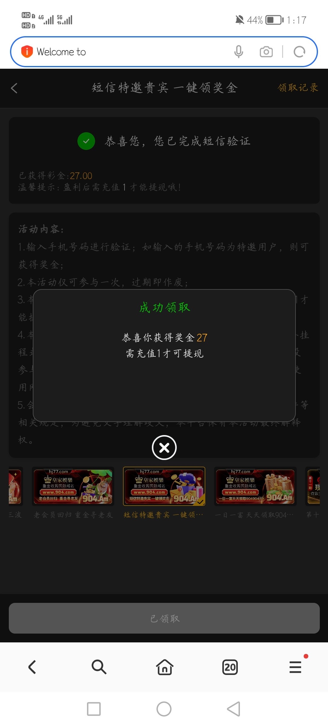 注册优惠里面自助申请彩金,手机号在特邀名单内的秒送,彩金不限制游戏,一杯流水提款
