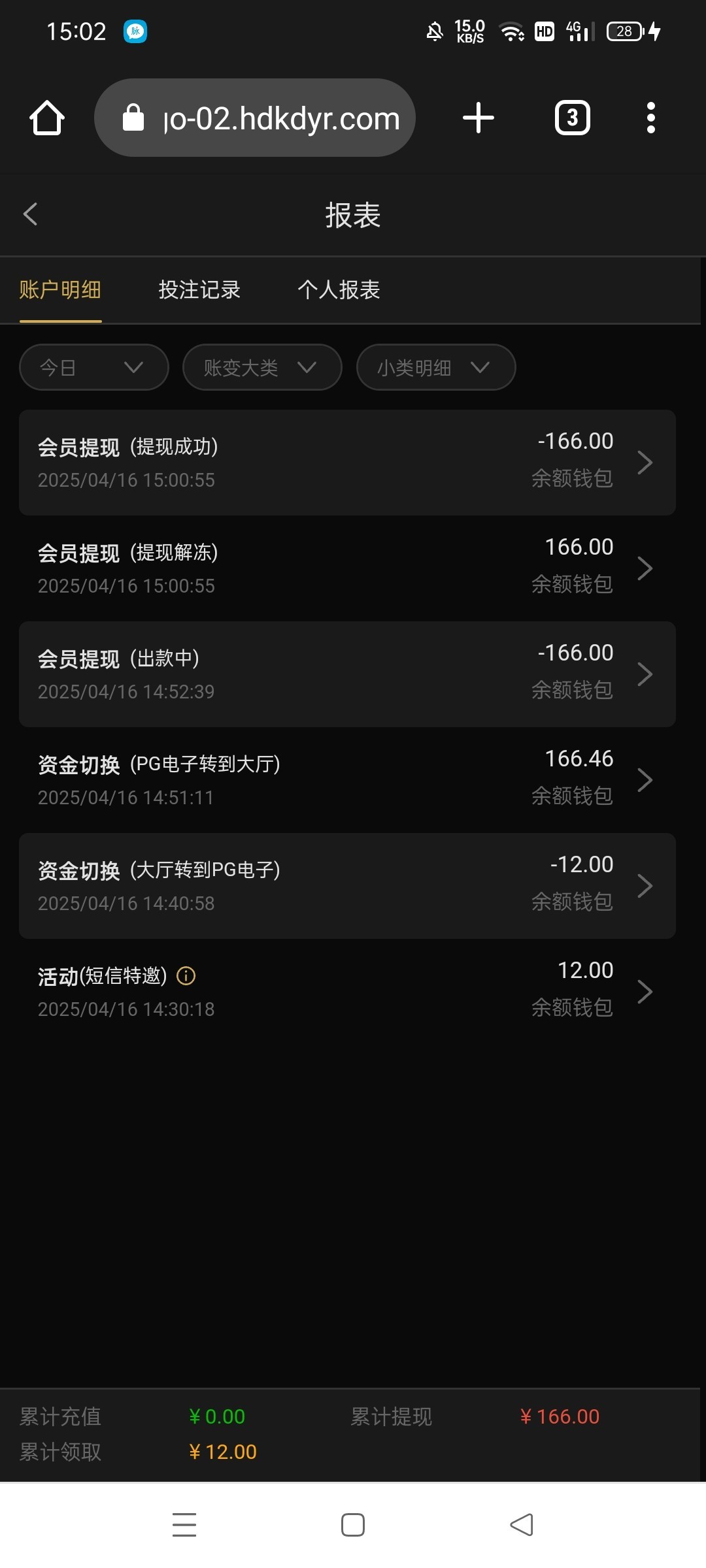 出款情况:自测(