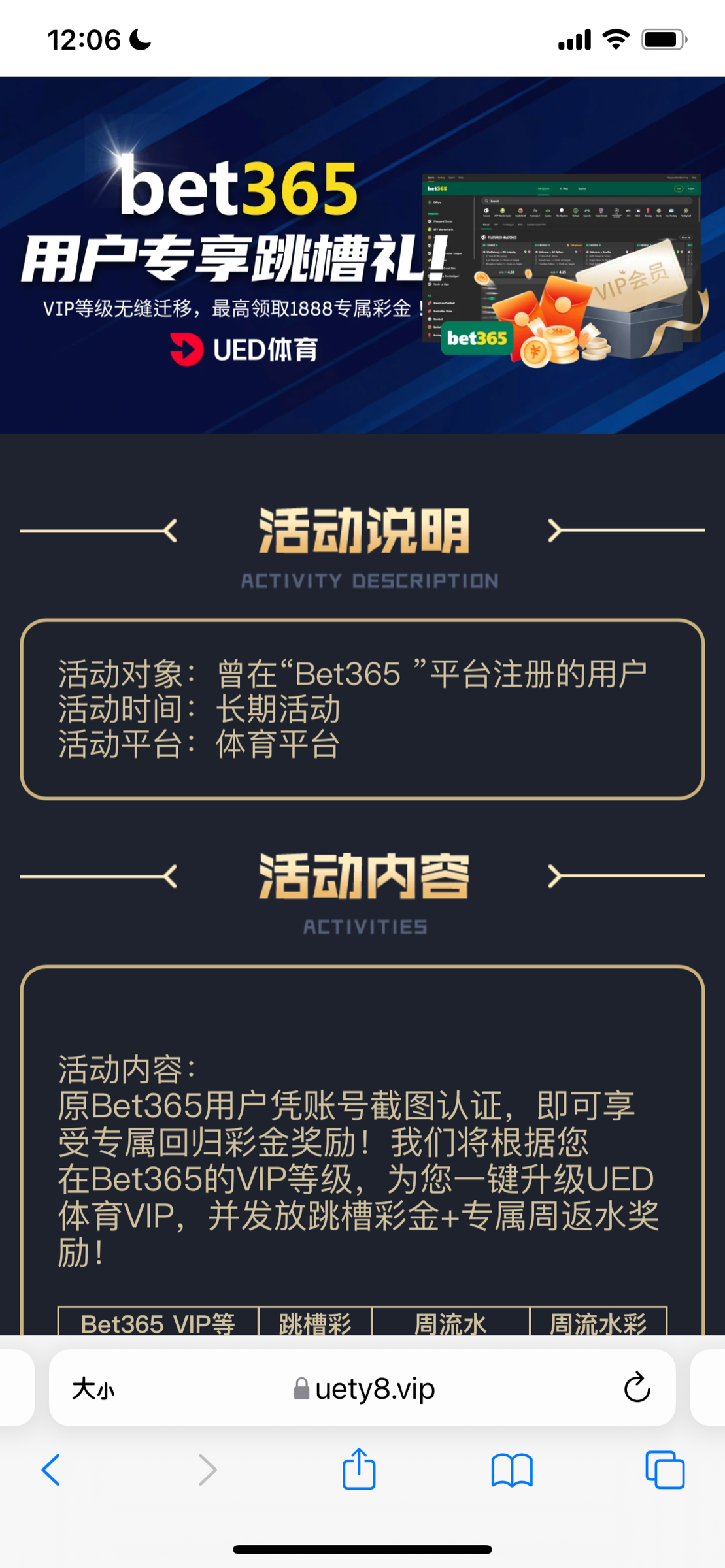 有Bet365账号的老哥,截图账号等级VIP发给客服就能申请,打3倍流水出款,领了88没打出来挂逼了。
