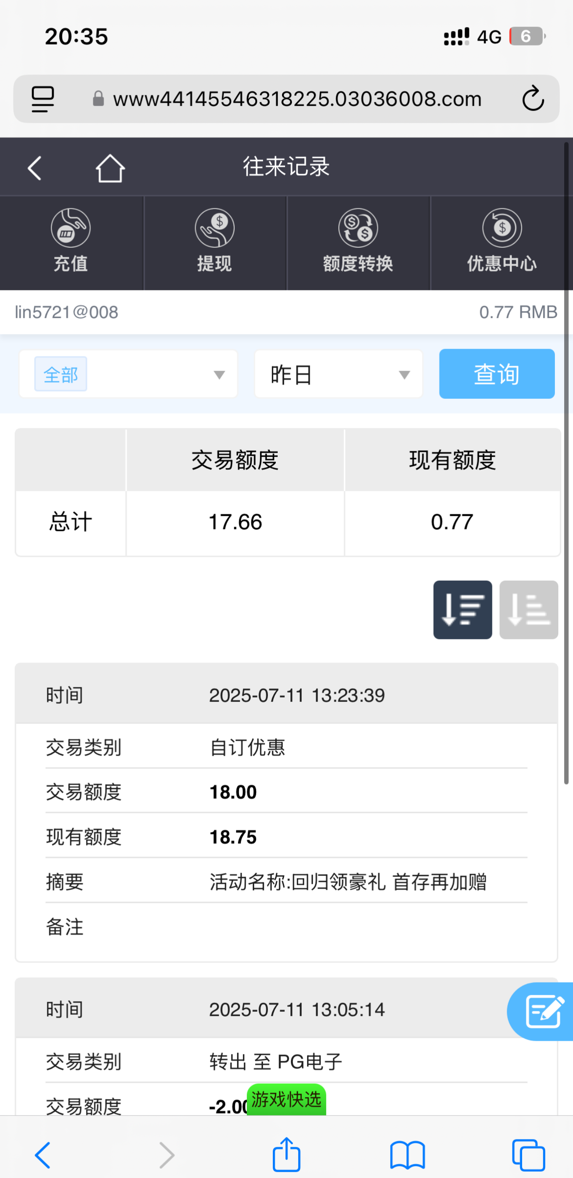 网址 6008.cm 有登记的14天没登过可以去申请,不需要充值。最低10起提
