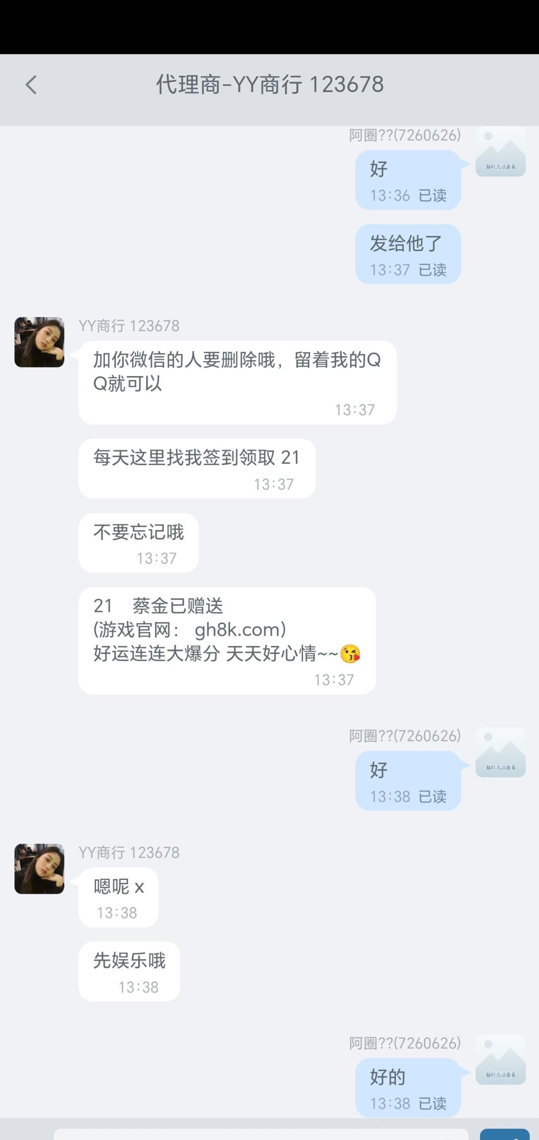 然后联系代理申请回归彩金 我的是每天21 ,在充值那个地方联系