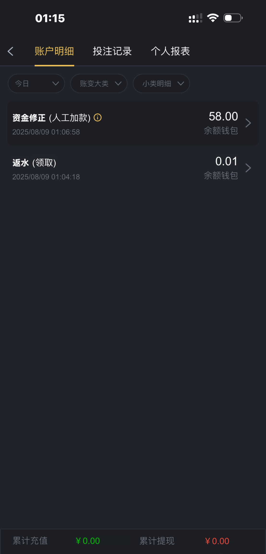 出款情况:自测(