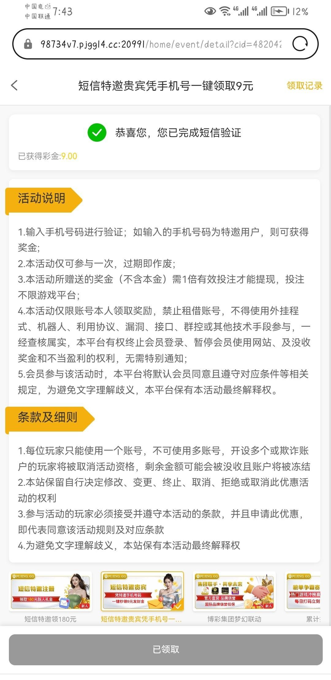 网址pujing.gg,自助申请9,我刚刚收到短信领到了,短信链接a.qqxxf.com/V6iF