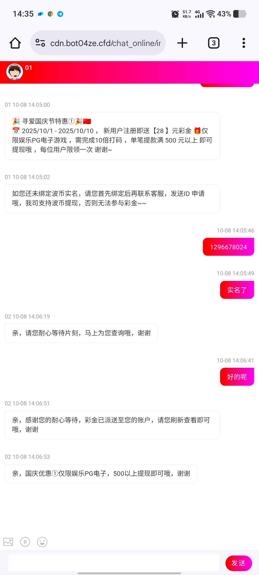 注册登录,实名波币,找客服申请28彩金!!