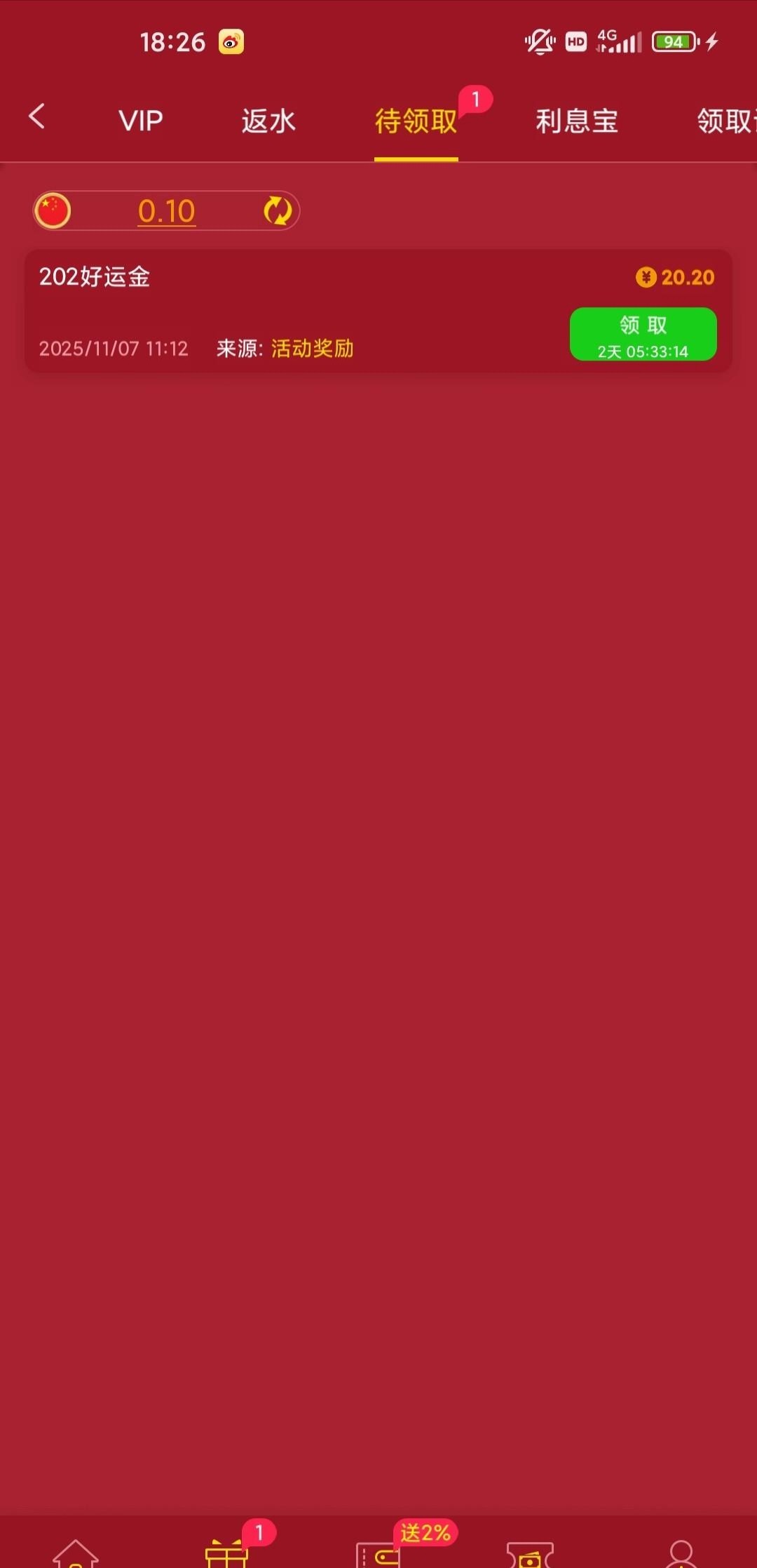 新葡京202又派发好运金了,有号的老哥们可以登录看看,我领了20.2没打出来