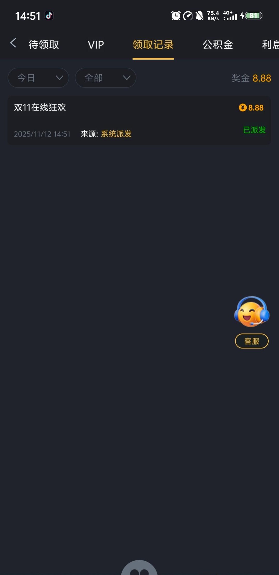 昨天登陆过的上号看看有没有