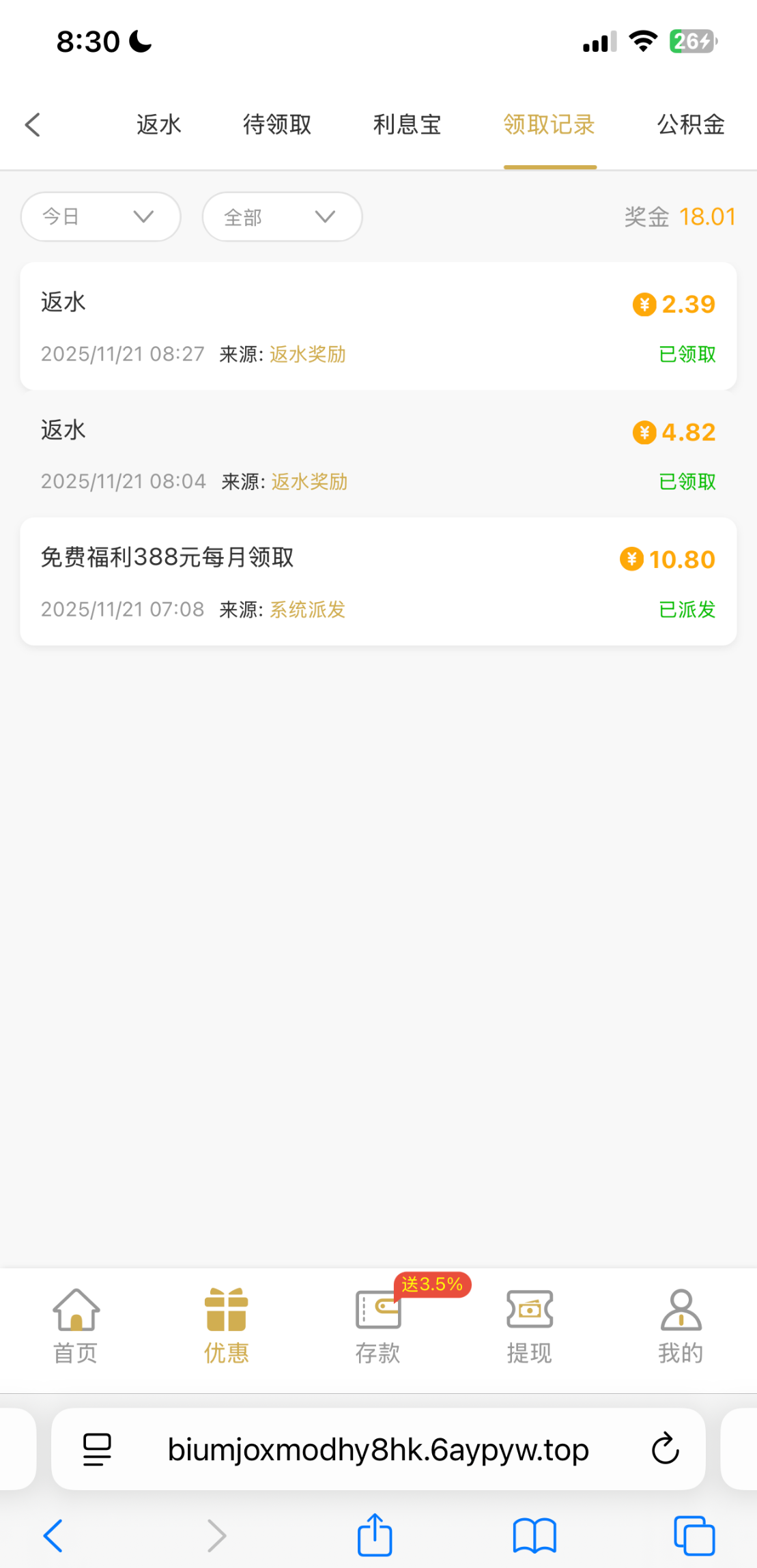 出款情况:自测(