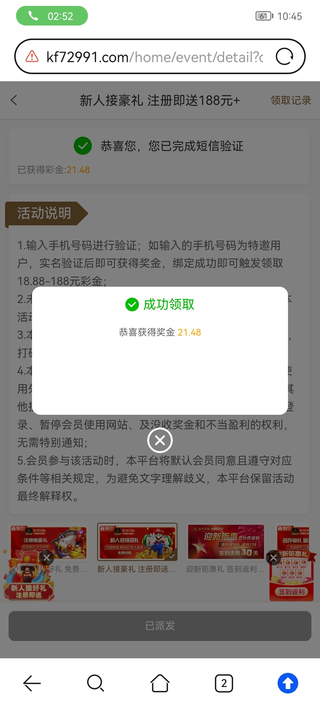打电话来的,注册直接去领,最低都20+,不用绑卡