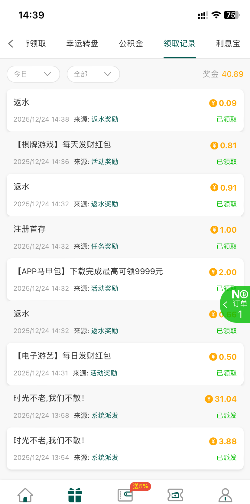 几个月没登录有登录彩金 那个三十块钱的翻倍彩金任意充值就可以领,我充了十直接领到了。以前充过一百的还可以领那个马甲包的彩金