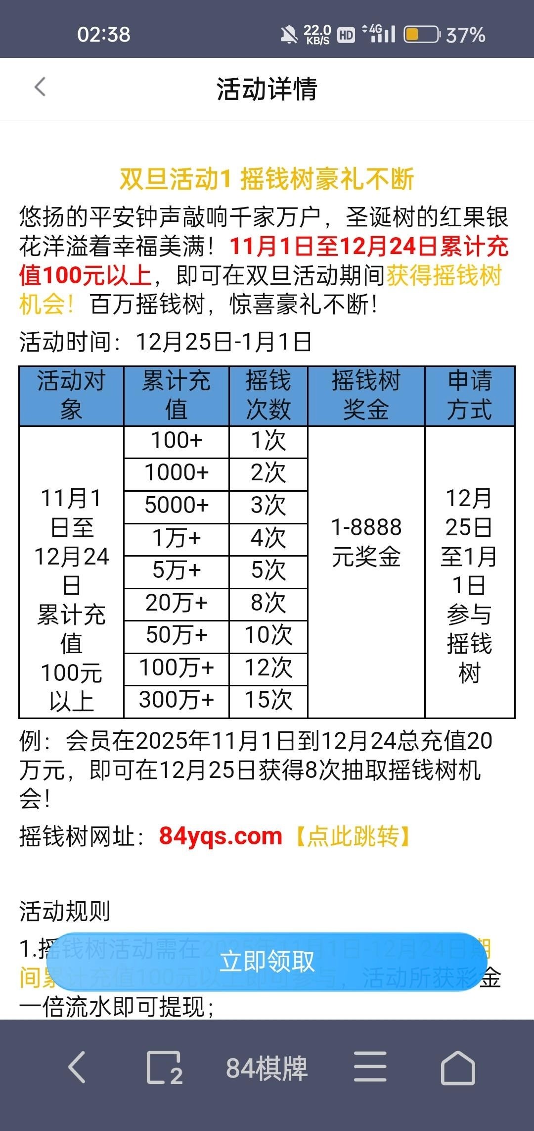 11月1号到12月24号累计充值100就可以参加