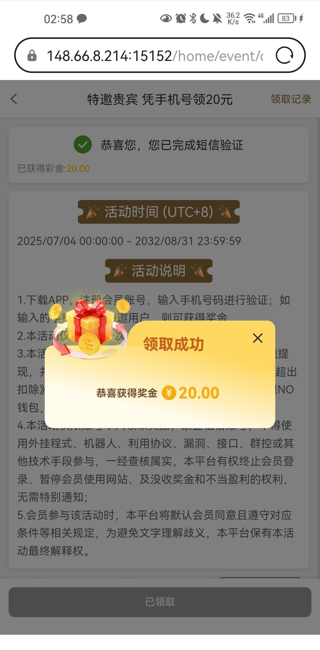 手机号验证碰瓷彩金