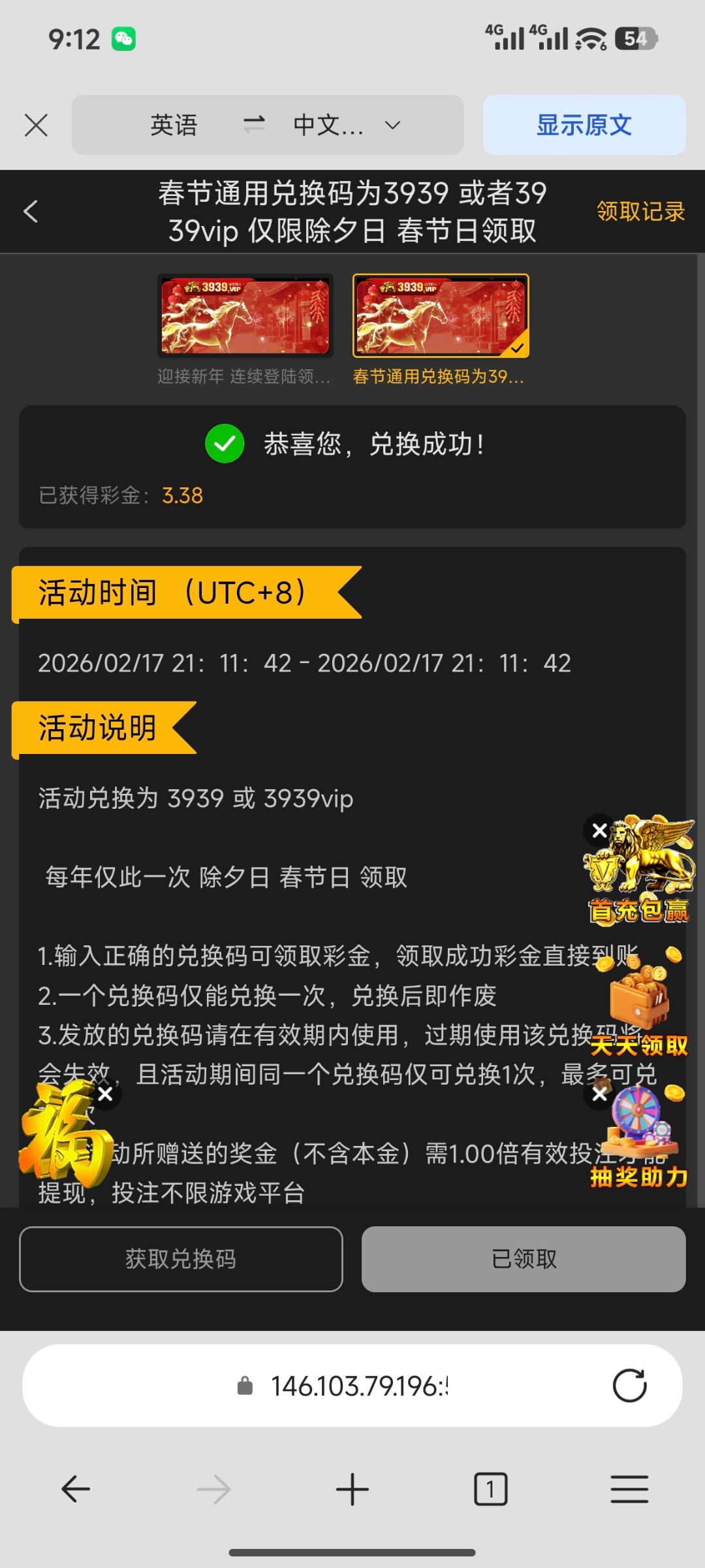兑换彩金