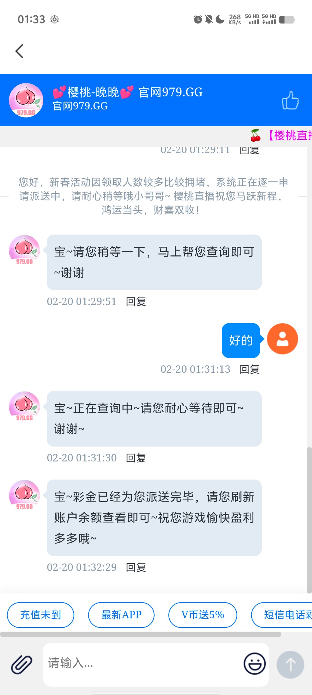 【樱桃黄播】—✅—新年彩金