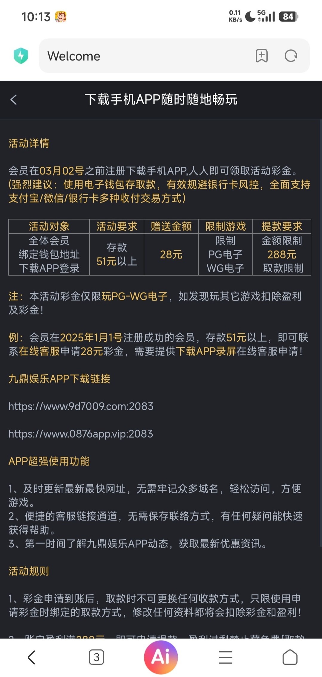 之前玩过的去看看,出了一个下载app彩金,我就去年冲过100今天找客服直接送了28