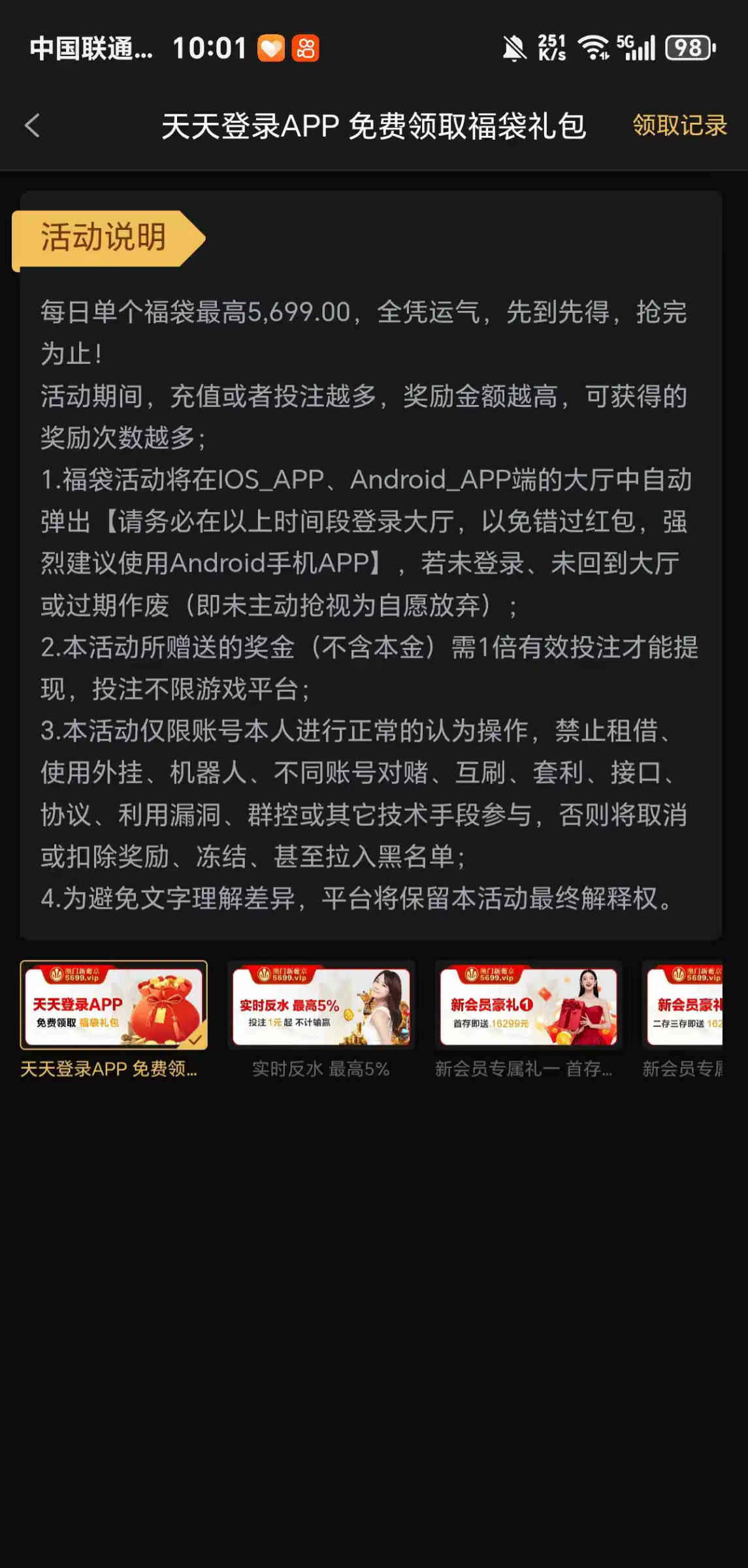 每天免费彩金